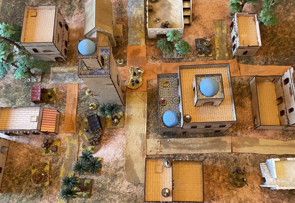 With the buildings from the Bandua set and those already made for Nakam Aya I'f, I already have a pretty full urban board to represent the city, and some of the scatter I've made so far works already. There are some big projects here to organise - a Qanat will be a substantial effort, and dressing up the city so it doesn't look like a collection of MDF buildings will need a lot of details. The bulky work is done - just the hard details to go!