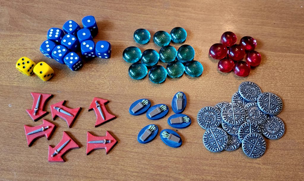 - 20 Reputation tokens – green glass beads or period-appropriate reproduction coins