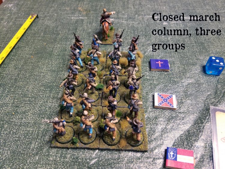 If the formation had been in a close column, they would have formed up all three groups without having to dice anything.