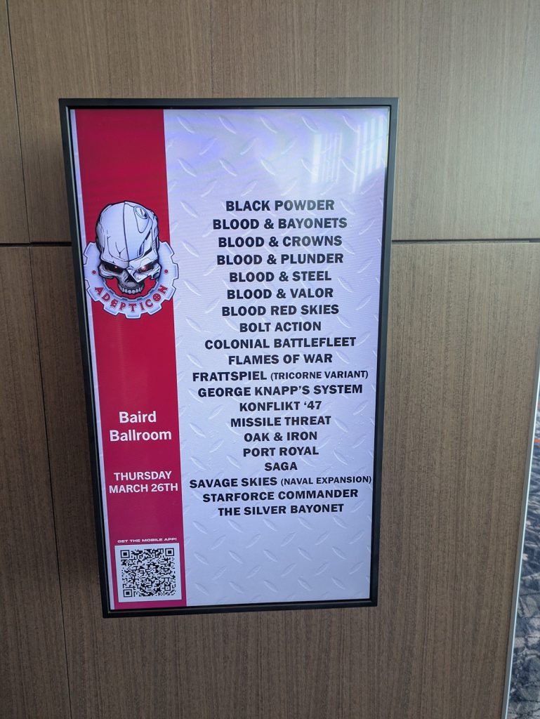 AdeptiCon 2026 was a great time, as usual. I'll be back next year, as usual. If you're in driving distance or have the ability to fly to it I definitely recommend it as one of the best ways to spend your wargaming dollars and time. I hope to see you there next year!
