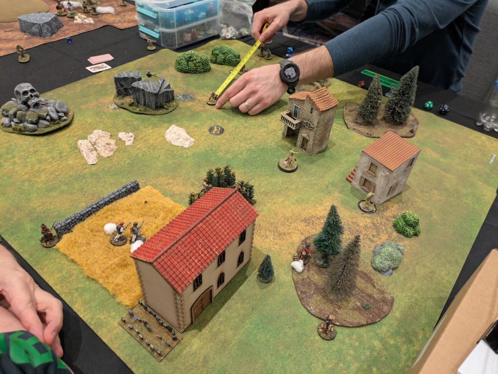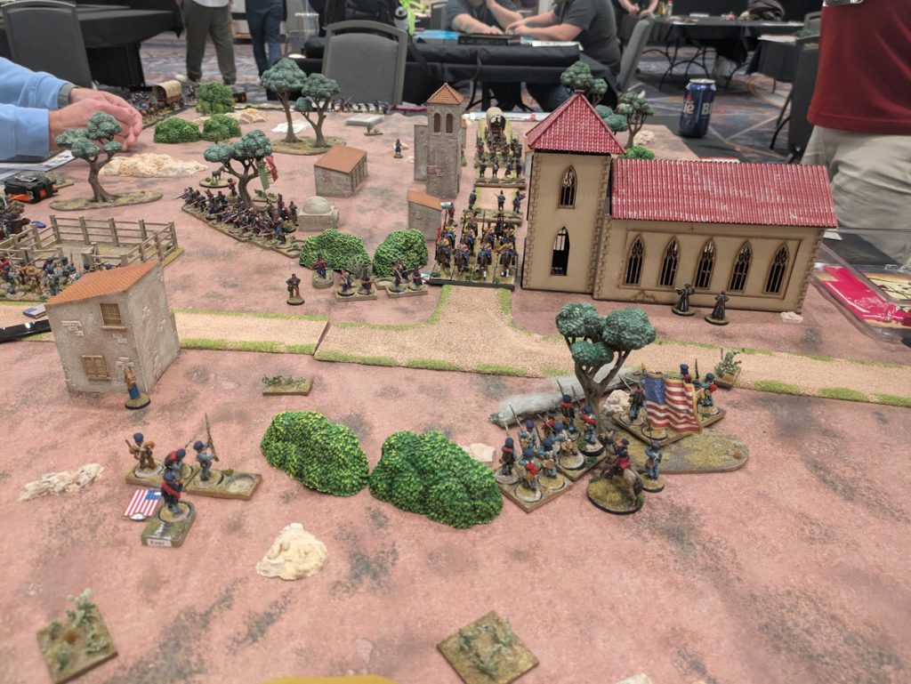 Both games showed some really good use of Sharp Practice as well as other maneuvers, like using four command cards to double activate. The Mexican forces did manage to get the Americans close to losing a command card the first game but in the end they had to retreat. In the second game the Mexican forces did better, moving up and laying fire into the advancing Americans, but were not able to hold on when the Americans pushed forward.