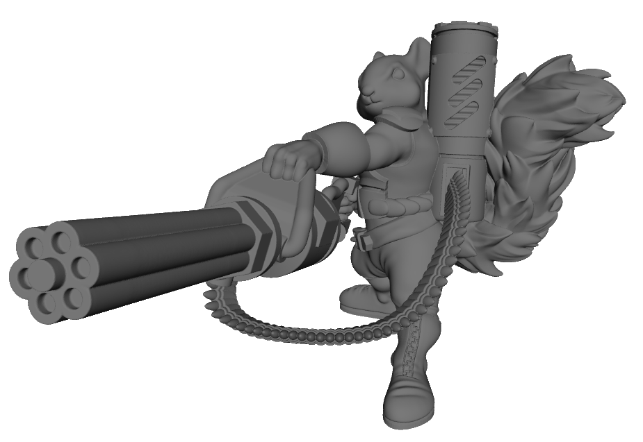 One of the included STLs available in the campaign: a squirrel person with a minigun. Credit: Bad Goblin Games