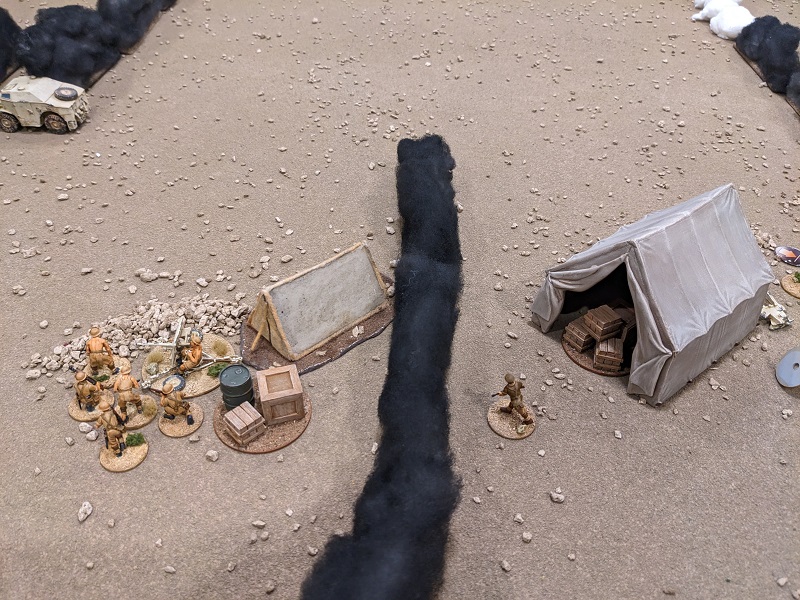 I considered also deploying the 2-lb AT gun, but given the location of the smoke I really didn't have anywhere to put it to get a clean shot on the German Leutnant's tank. Best to keep the South Africans' powder dry and wait for a better target (or maybe a double phase).