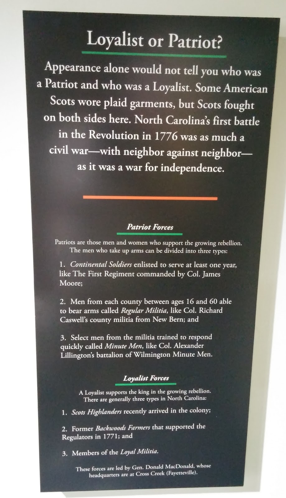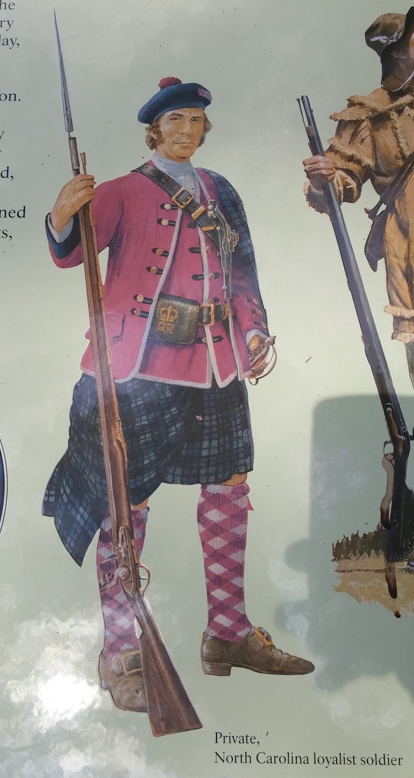 He also received permission to start recruiting Loyalist Scots in the area. I honestly had no idea there was a large Scot population in NC, but they were definitely there. So he recruited Loyalist Highlanders to join his cause and together with the Regulators they made up the Loyalist contingent in NC.