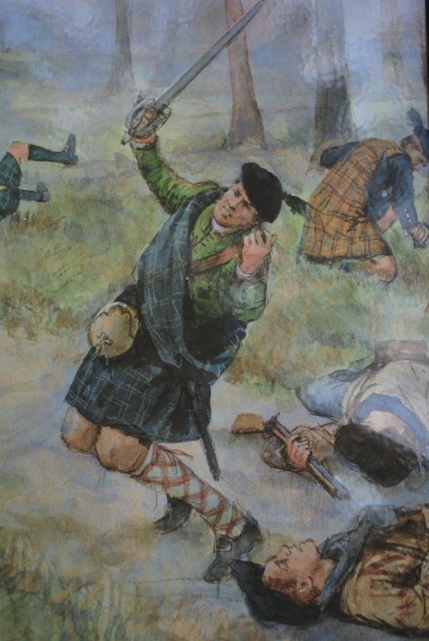 The Highlanders reached Caswell's false encampment, finding fires still burning and tents still staked. They moved forward to toward the bridge, with the phrase KING GEORGE AND BROADSWORDS their inspiration.