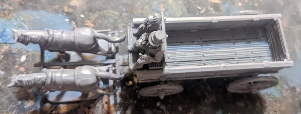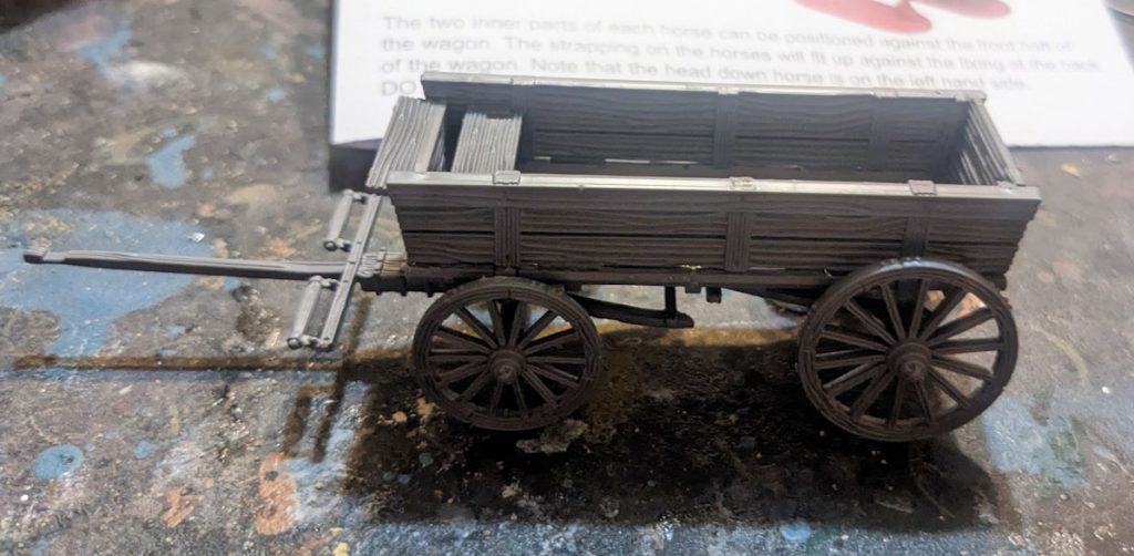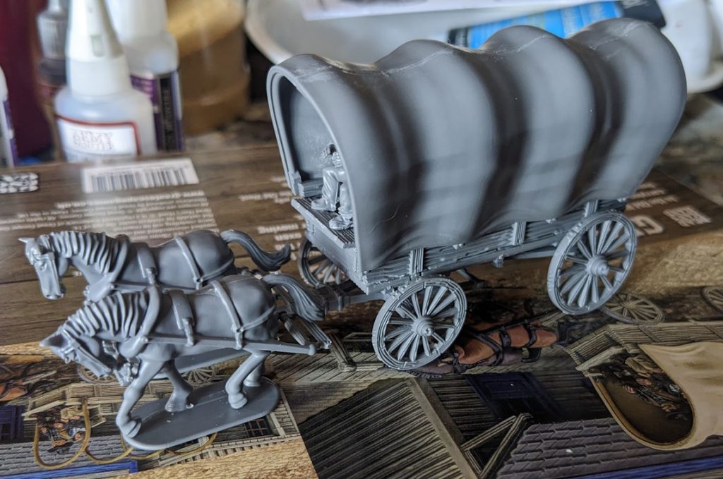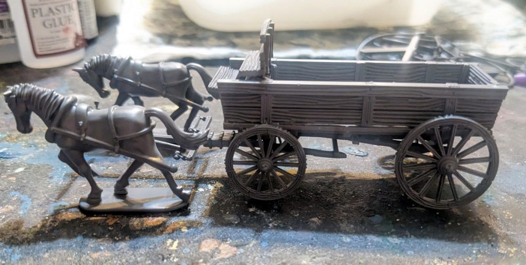 Definitely dry-fit the horses to make sure you've assembled right - there are little nubs to attach the main wagon and the front yoke to. You may have to move the yoke around a bit but it's easy to glue into place later.