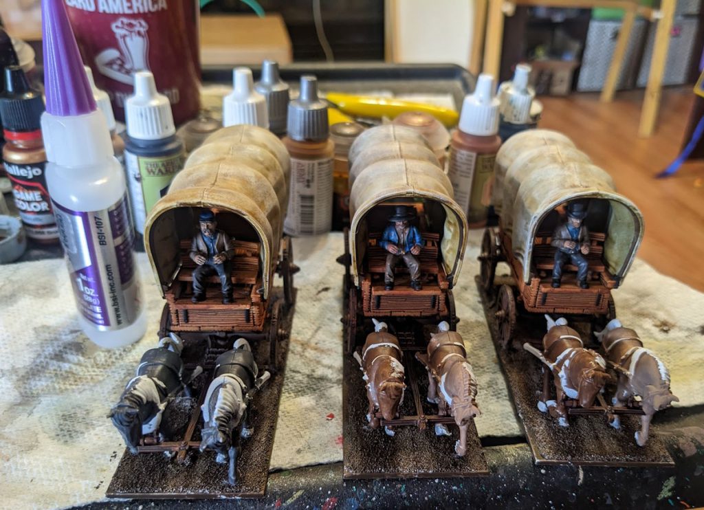 You can see in the above photo how the seams caught the contrast paint I was using on the wagon covers. I had to file, re-prime the areas with paint on primer, then re-paint.