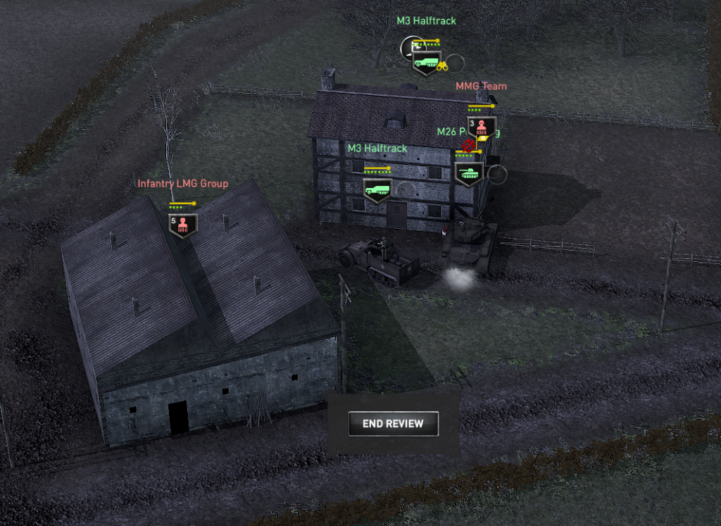 Winning in the game is done by either capturing / defending objectives or causing your enemy's morale to drop to zero. Morale is lost when units are lost - tanks being more valuable than infantry units, naturally. Just like in TFL games I love this mechanic, because you're not just suicide charging the enemy to try to get them out of positions - your troops have value, and if you waste it, you'll lose.