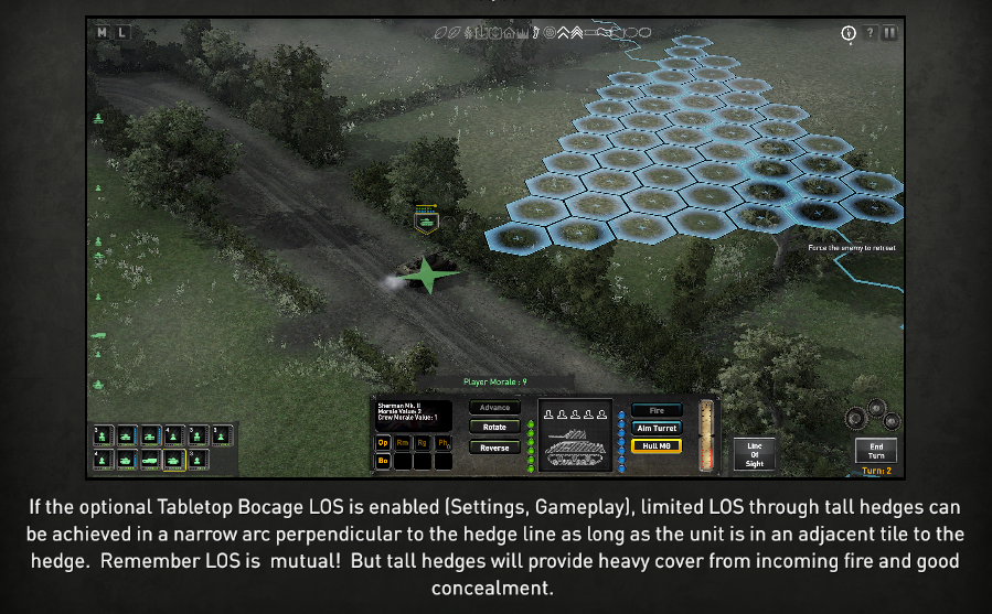 The game has some interesting options, including bocage LOS. Credit: Giant Flame