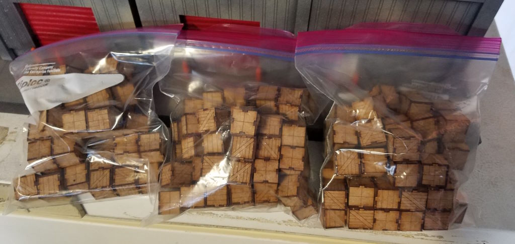 The part that took the longest was putting together all the crates and pallets included with the kit. I think there are probably 200 of each, and the crates are 6 pieces, the pallets 5. It took a while!