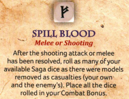 Spill Blood is a foundational ability for your ability to trade up (and it has a sweet name). You can charge in a unit that maybe you don't expect to win a combat with, have them die (or murder your opponent) and then for each model that died, you gain a die into your