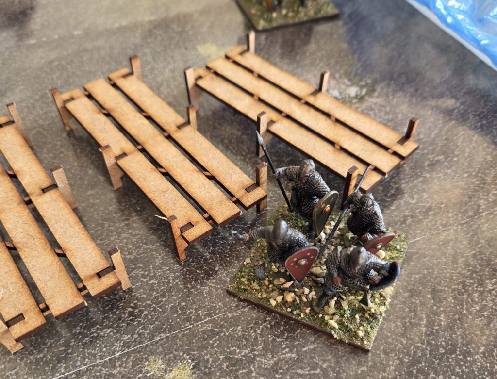 As for the docks/bridge, I actually didn’t paint these yet. Lining them up with my Victrix Normans, I decided that they looked a bit out of scale, so I didn’t want to use them as is. They’re definitely a good starting point, but in this instance I am going to make some modifications. If that’s of interest to anyone, let me know, and I’ll write it up.