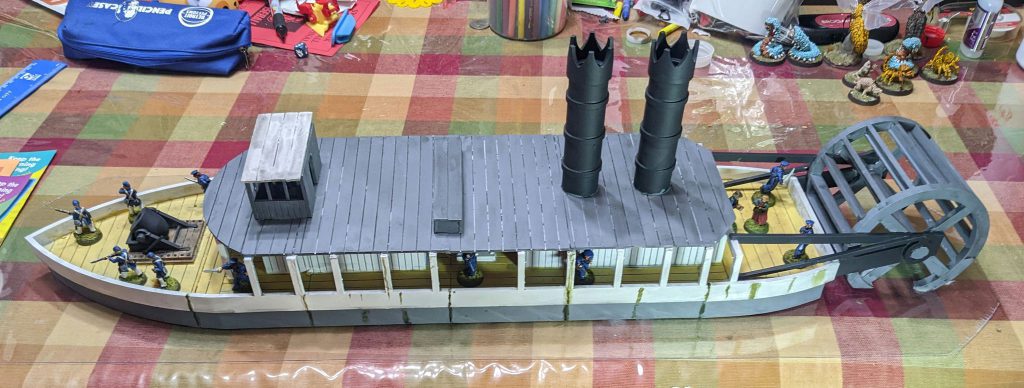 There are other things I can do with the steamer going forward - it can be part of the campaign, where it moves from battlefield to battlefield. I have navy sailors painted up that can man it, and I have artillery I can put on it.