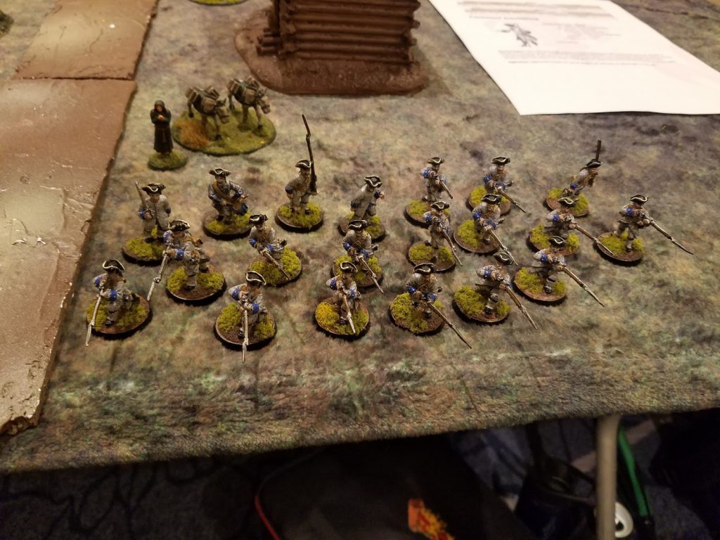 Here you can see the Virginia Regiment in all its glory and Geoff’s regulars. He painted them as the 60th Foot, who certainly saw more action than the provincials did.