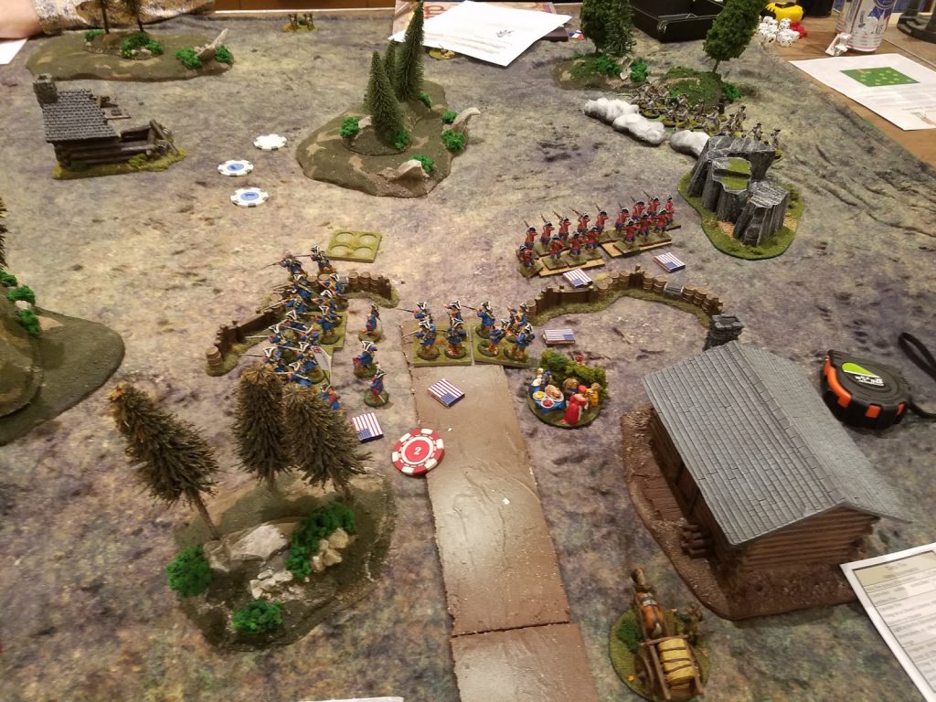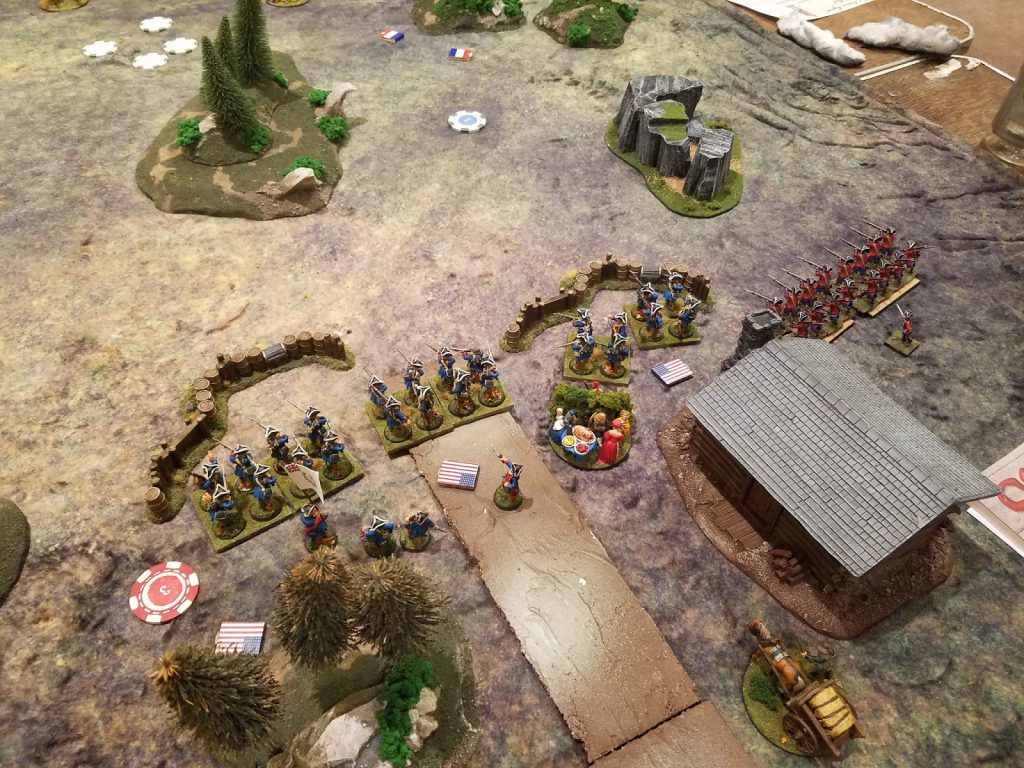 The Crown forces move up on the grenadiers while the provincials steel themselves for the oncoming natives.