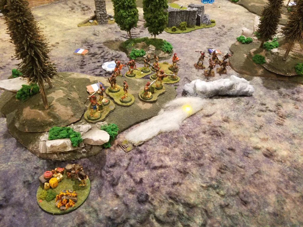 Here you can see the effects of several volleys from both sides – the natives were treated as Light Infantry, not Tribes. They did not have first fire, however.