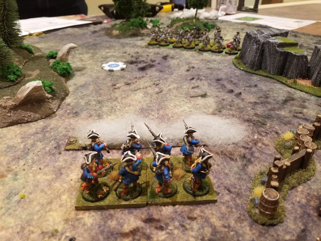 A small detachment of Provincials puts fire on the French grenadiers. Credit: Michael O "mugginns"