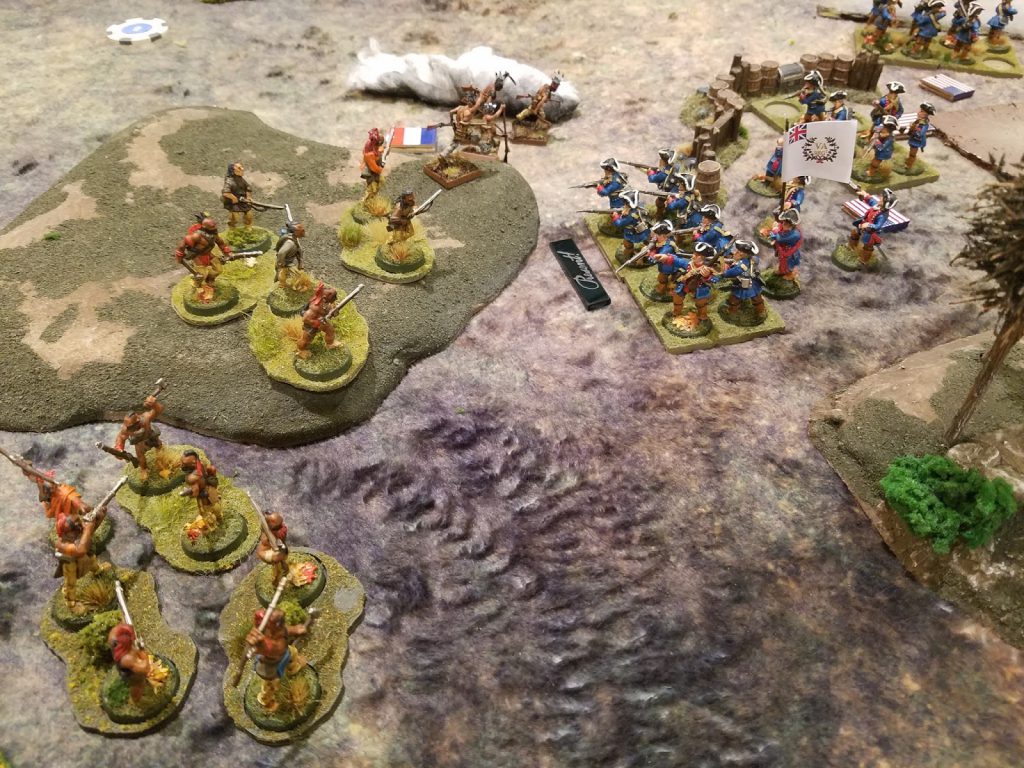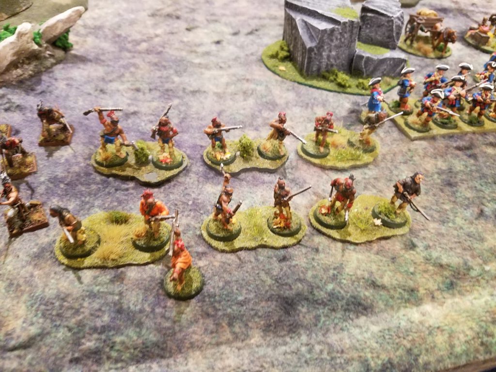 The natives actually charged into fisticuffs with the rangers at one point and absolutely destroyed them, but were forced to fall back due to larger number of casualties. They actually killed the colonial ranger sergeant in hand to hand, taking his scalp for the chief.