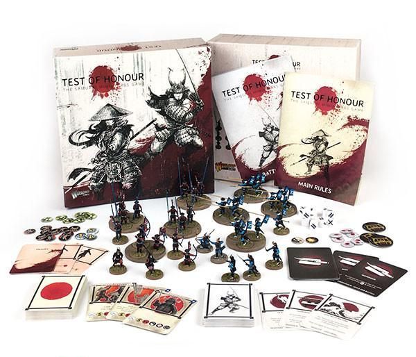 The first edition of this game was produced by Warlord Games in 2017, using the Wargames Factory samurai plastics (the Samurai, Samurai Cavalry, Ashiguru and Ashiguru Missile Troops sprues that Wargames Factory had produced) in both the core set and a set of expansions launched at the same time. In each of these sets, and with the core set, there was a single metal miniature (and sometimes some metal heads) that were the special characters. Each expansion added more cards and troop types to the game, and gave more quest and skill cards.