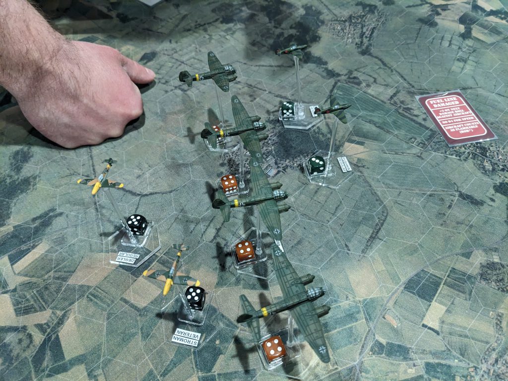 Yak-1s (the same as those in the show) dive through a bomber formation in a game of Bag the Hun. Even if the aerial combat scenes in "The Attackers" don't have the best CGI, they still set up some interesting scenarios that you can recreate yourself on the tabletop! (Credit: Michael O "Mugginns")