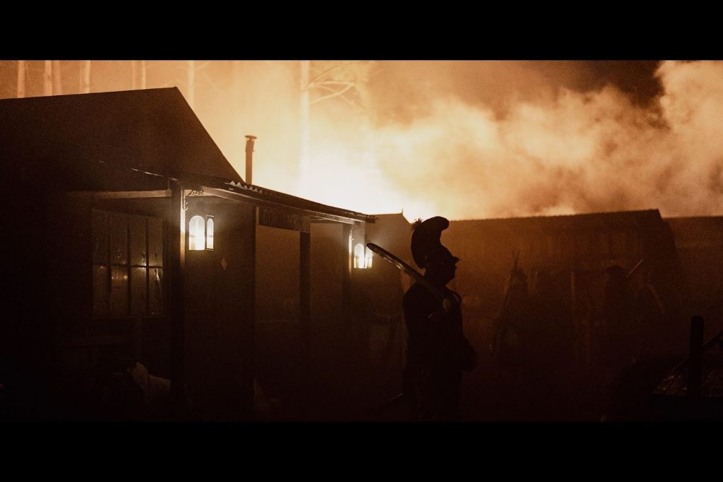 A village ablaze. Credit: Oliver Facey.