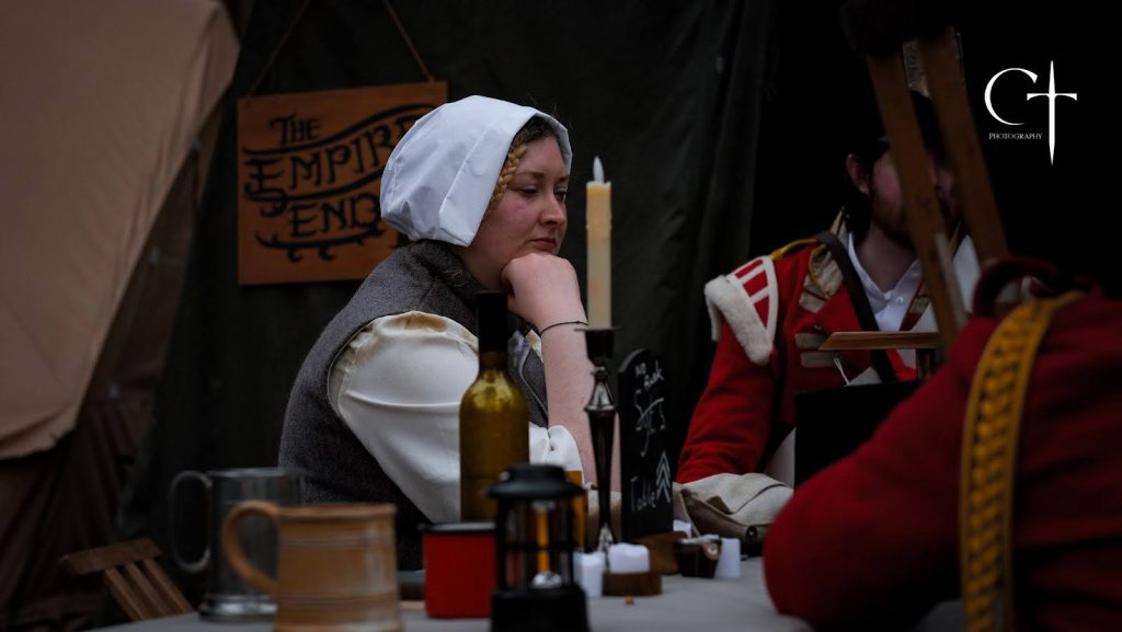 Generally at a reenactment event, particularly public facing ones, you play a role. For the Napoleonic period, this could be a soldier, a camp follower, or so on, but it’s often playing a particular archetype of society rather than a fully realised person. A historical LARP gives the opportunity to play an individual who exists fully within that period, with all the foibles and character traits that any individual has, without the distraction of appealing to an audience beyond your fellow players. Historical LARPs also give the opportunity to not be quite so laser focused on accuracy as Reenactment. A wrong belt buckle here, or a pair or modern hiking boots there for ankle support, are small things that can easily fade into the background at a LARP when you’re fully immersed in the period. This also allows a much lower buy-in cost than reenacting. While plenty of people at The Forlorn Hope do go all out on their costuming to make it as accurate as possible (and this looks fantastic!), having some extra wiggle room opens up the game to a much wider audience.