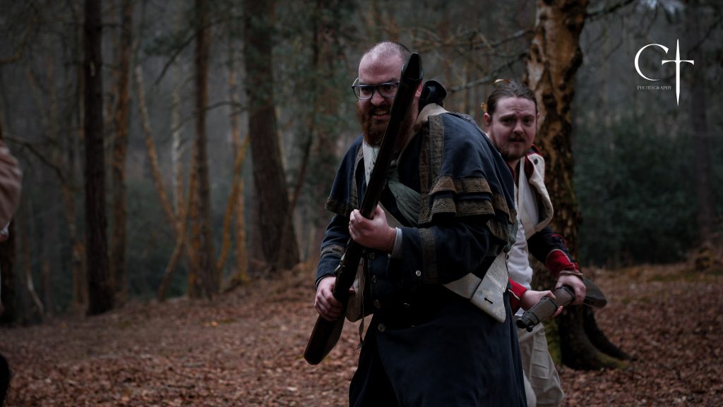 The complexity of LARP rules systems varies massively. Some have virtually none, and build storytelling through theatrical conventions rather than mechanised systems. Other are horrifically complicated, with multiple layers of maths, locational modifiers, and special rules (sometimes requiring a particularly convoluted practice known as “battleboarding”, in which the action is paused after every combat so select players can update their notebooks and tell players whether they’re dead or not). The Forlorn Hope is on the simpler end of the spectrum, and it emphasises cinematic storytelling over traditional gaming. In combat, you fight with considered, realistic blows (rather than fast, unrealistic blows designed to deal as many “hits” as possible, known in the hobby as “drum beating”), and you sell injuries at the moments you feel make the most sense, or at the most dramatically powerful time. Combat characters can be armed with a LARP-safe or reenactment musket (with party popper or percussion cap ammo, respectively) if they’re an infantryman, and additionally some sort of appropriate blade (and maybe a pistol) for officers, if they so wish. The target of your “shot” can be alerted by yelling some variation of “Oi Frenchie”, or a more specific call if you’re a rifleman (more accurate, you see). Whether the shot actually landed is basically up to the target!
