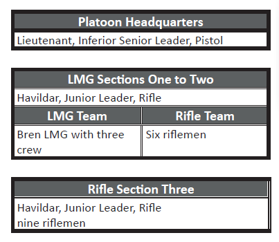 Chain of Command platoon makeup for the INA. Credit: TooFatLardies