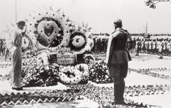 Bose visiting the now-demolished INA Memorial in June 1945.