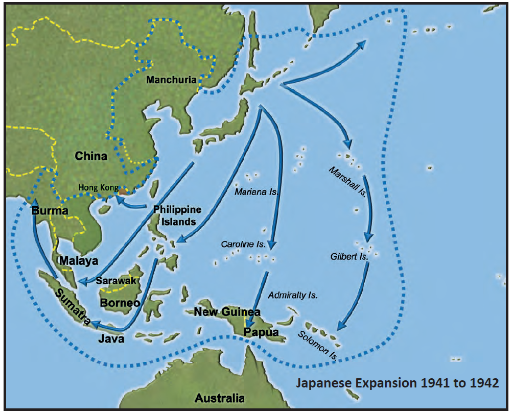 Map of Japanese expansion in the Pacific, 1941-1942. Source: Chain of Command: The Far East, 1941-1945. TooFatLardies