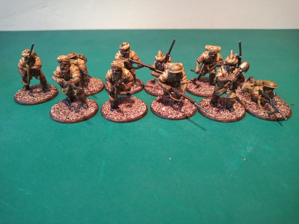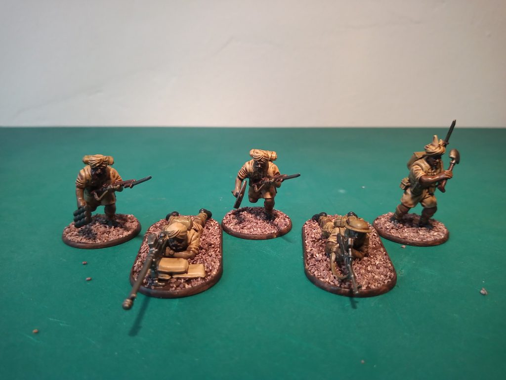 Surprisingly for such an under-discussed army, finding models to represent the INA is relatively easy. Initially when starting this project I picked up a box of Imperial Japanese and British 8th Army Infantry, but as I looked into the history some more I found that the INA were only equipped with their old British uniforms and weapons. In fact, while the British 14th Army would transition to their new jungle green uniforms by the time they faced the INA, the INA would retain the old khaki uniforms, represented pretty much perfectly by the Warlord Games 8th Army kit. It's worth noting that the Warlord Games Japanese models are notorious for their racist head sculpts, I bought my box before I learned that, but I'd recommend looking at models from other companies if you want to run Japanese forces alongside the INA.
