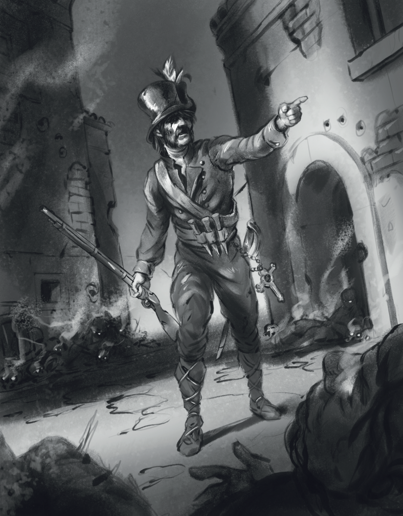 If you're totally unfamiliar, TSB is a warband-sized (eight or fewer models) game where you paint up Napoleonic soldiers from a specific country who fight other Napoleonic soldiers and gothic horror monsters such as vampires, werewolves, zombies, etc. The massive conflagration of suffering caused by the Napoleonic Wars has drawn out an evil faction called The Harvestmen who are using said suffering to push lots of cryptids and monsters into the world. Your warband is a hand-picked group of elite warriors ready to fight to find artifacts, secrets, and treasure that will help fight the war.