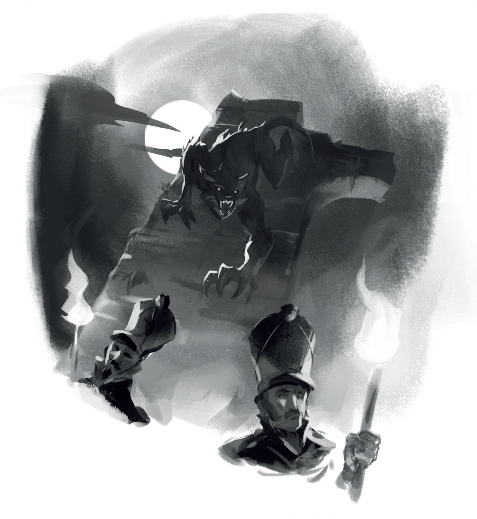A werewolf stalks soldiers on patrol. Credit: Brainbug Design
