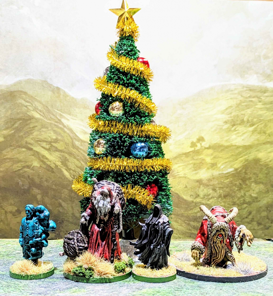 - 1-2: Happy Horrordays - choose one friendly figure to take a Terror check at -3 as they are assaulted by visions of Krampus, dead relatives, and the futility of life.