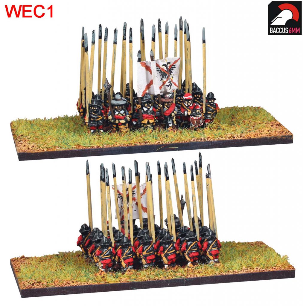 The best option here is Baccus. At this scale, you can represent pike blocks and deep ranks of musketeers without taking out a mortgage for the miniatures. Not only that, but they offer a specific “Big Base” unit which has a healthy pike block and deep sleeves of muskets in a convenient bundle. For those who want to nail “the look”, this is a good place to start.