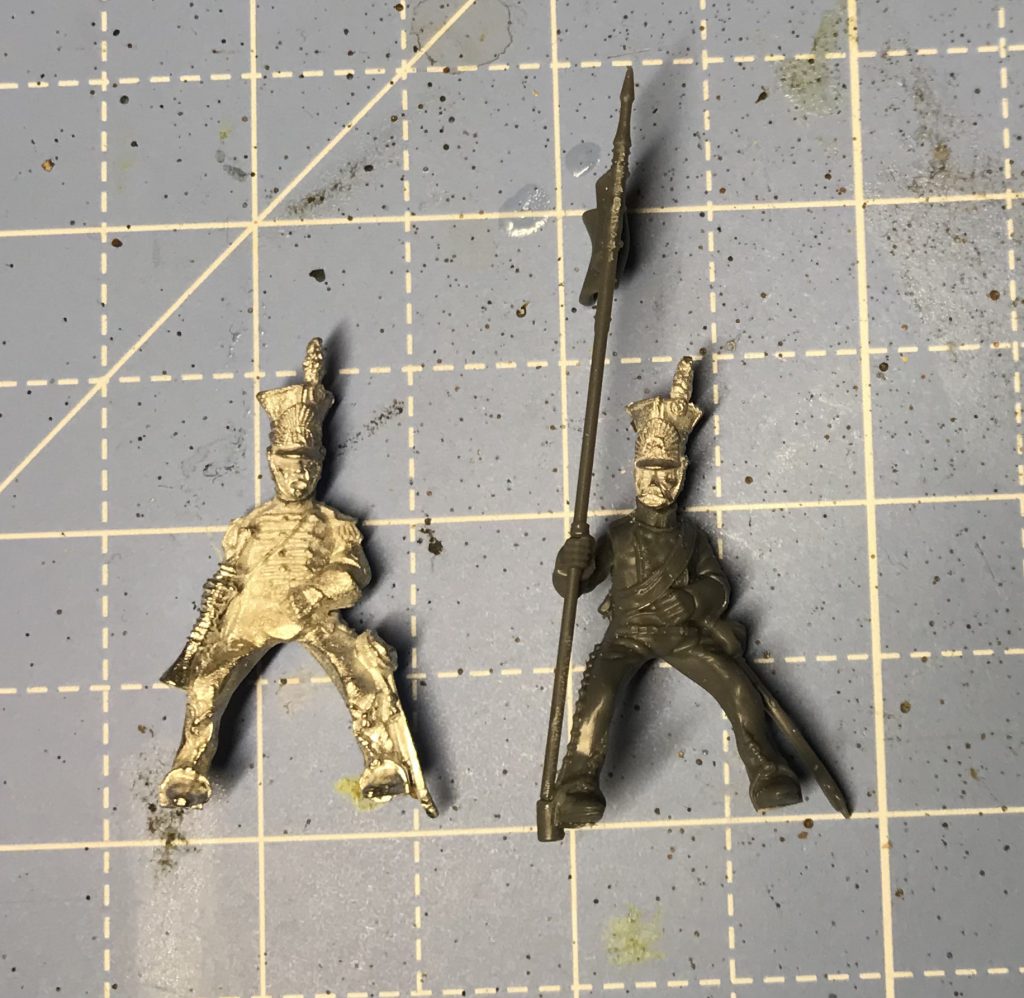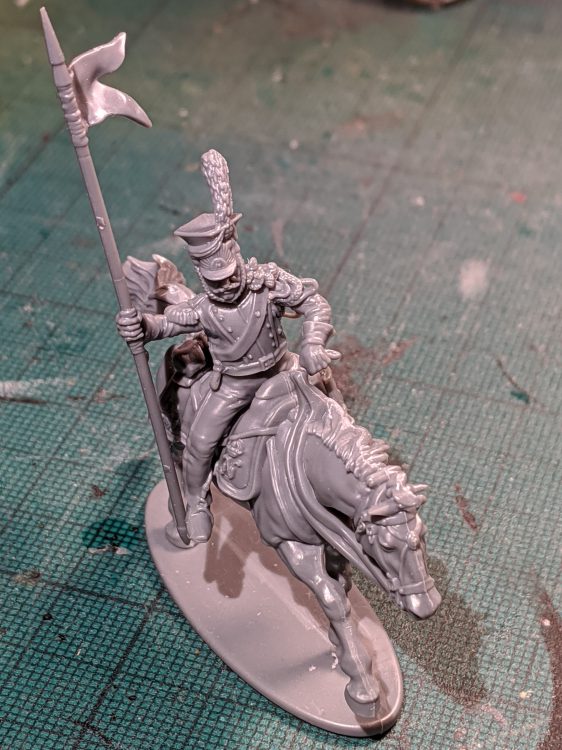 nicest kits out there, and have the right basic uniform, but they’re very much – and very clearly – Guard Lancers, with prominent braiding, fancy shabraques (the pointed saddlecloth) and epaulettes, all elements I would have to remove to pull off the Berg Lancers in their battered post-Russia 1813 form. The Guard Lancers will have to wait for another project, and I’m looking forward to that one too!