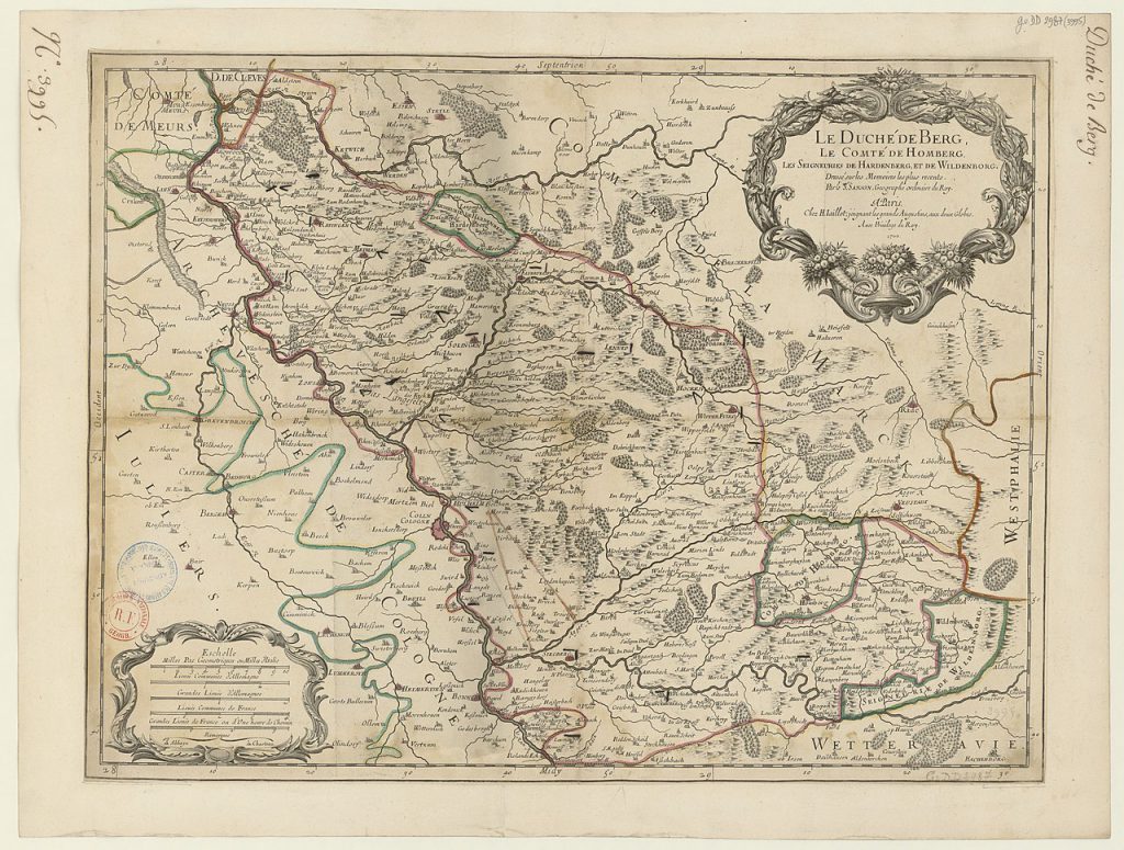 The Duchy of Berg in 1696 by Sanson - the Grand Duchy would be based around this core. Credit: Wikipedia