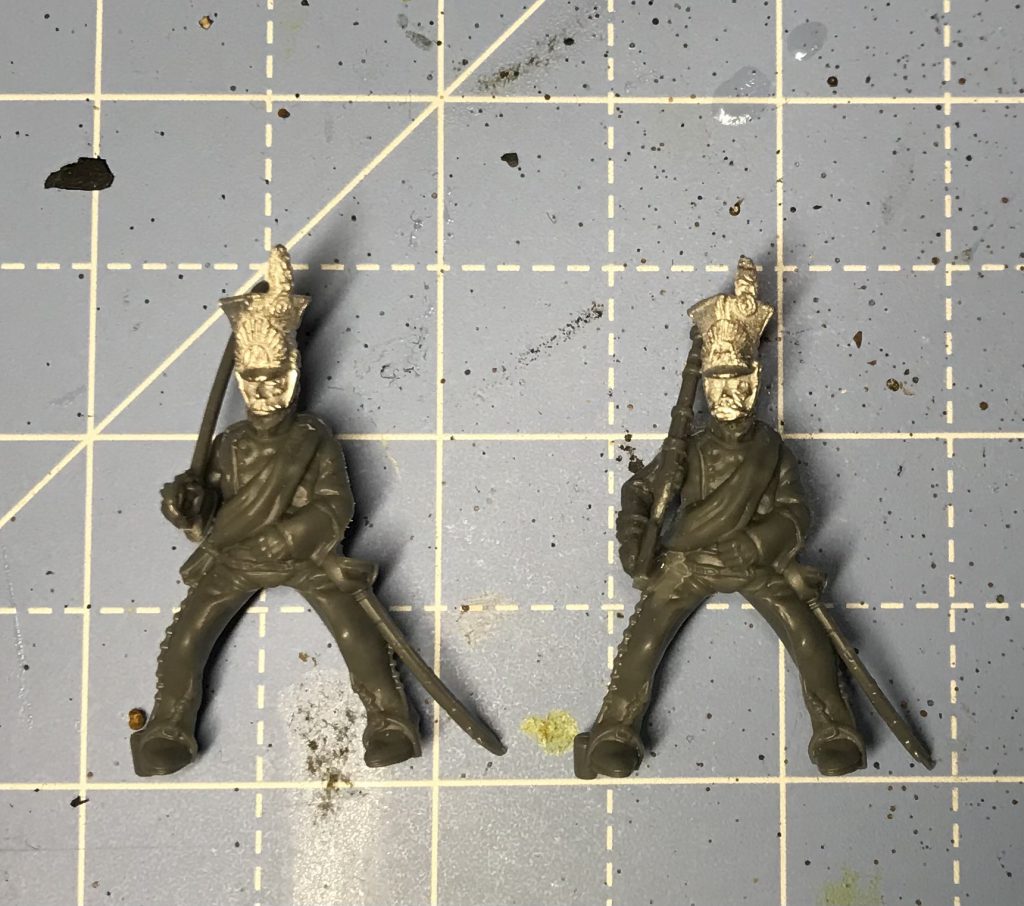 Right off the bat I ruled out the Perry Chasseurs – there are depictions of the Berg Lancers in Chasseur style uniform, but that’s not the uniform, or the period I’ve settled on for my unit. The Chasseur uniform is single-breasted, lacking the fabulous lapels that will give the Lancers much of their colour. I’d also have to make lances – not too difficult given some straight wire, but a lot of work with file and knife to turn sabre-clutching hands into lance holding ones.