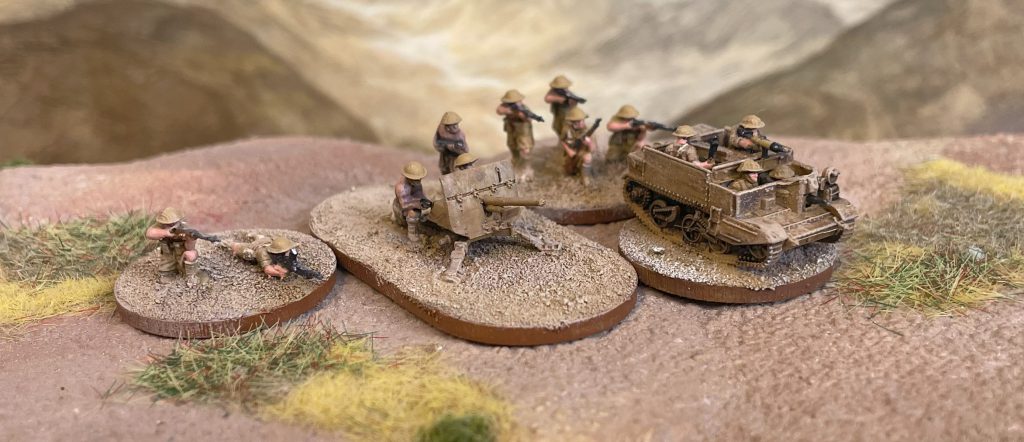 The 2lb Anti-tank gun (Ordnance Quick Firing 2-Pounder) - a really fantastic addition. Support pieces that aren’t divisional or platoon based fall into a weirdly unsupported slot, and having this battalion level asset in plastic is great! You can model this in firing or travelling positions, with wheels on, up or down. The crew are great and manage to get across the weight of their work really well despite being only 12mm tall.