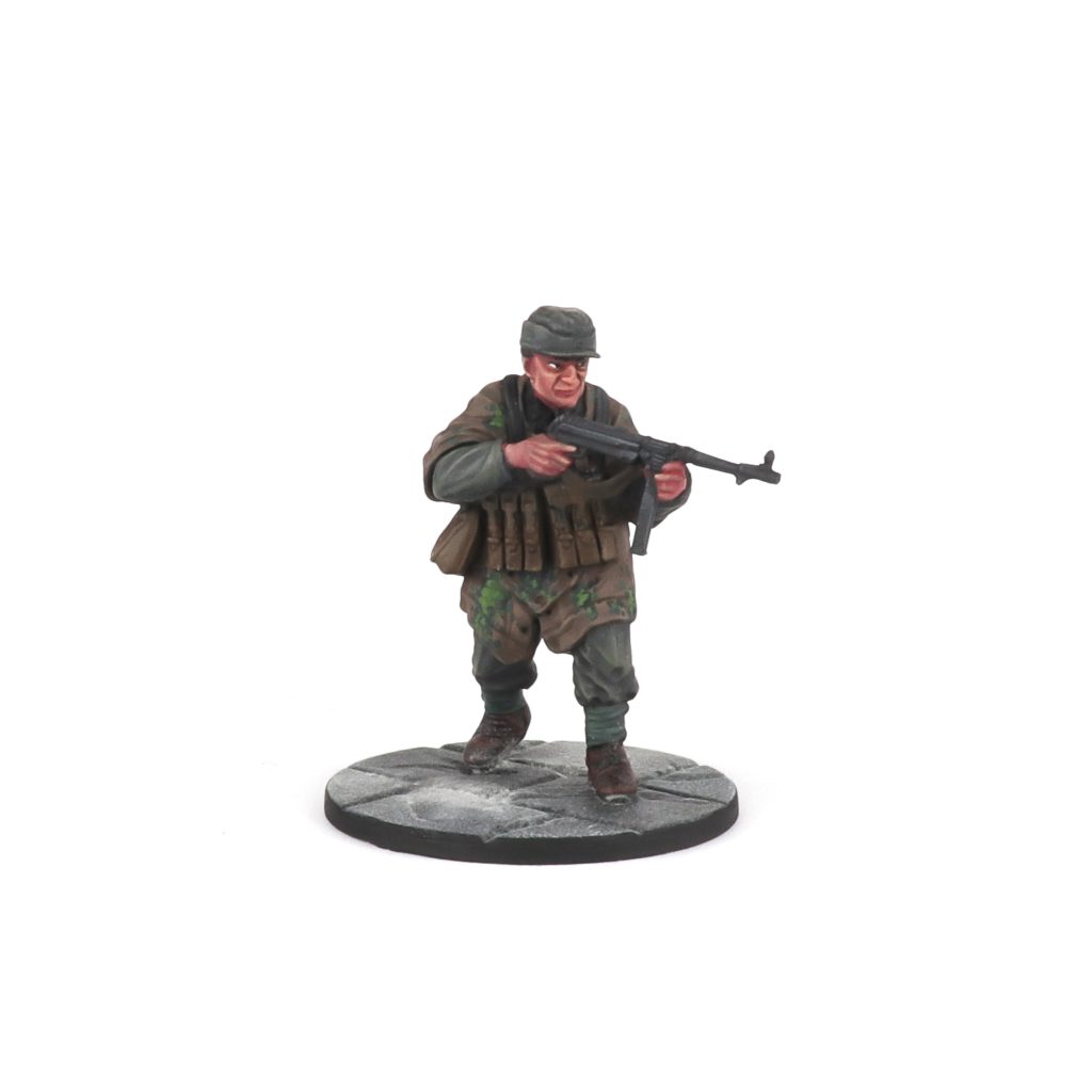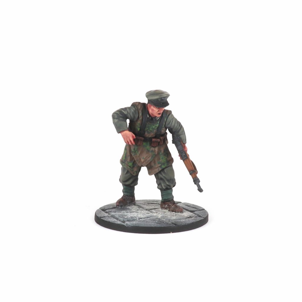 These guys have a good amount of details, but I do feel they have a bit too much in some places; the fabric especially feels overly textured, and there are a LOT of folds. Obviously clothes fold and crumple and are not smooth and flat, but some of these minis feel like overkill. I can see what the sculptor was going for and I am certain this would look great on a much larger scale model. However on such a small scale, all the bunched up texture comes off as more noisy since it is all so compressed. I have a similar critique aimed at the Zeltbahn ponchos, they too feel much more suited for a larger scale of model rather than what you get with 28mm. The last point goes somewhat in the opposite direction -- most of the heads have an undercut at the back of their head; this is represented by a smooth raised surface which just looks... odd? It is obviously meant to represent short shorn hair, but at this scale that is a difficult detail to represent and so it is just flat.