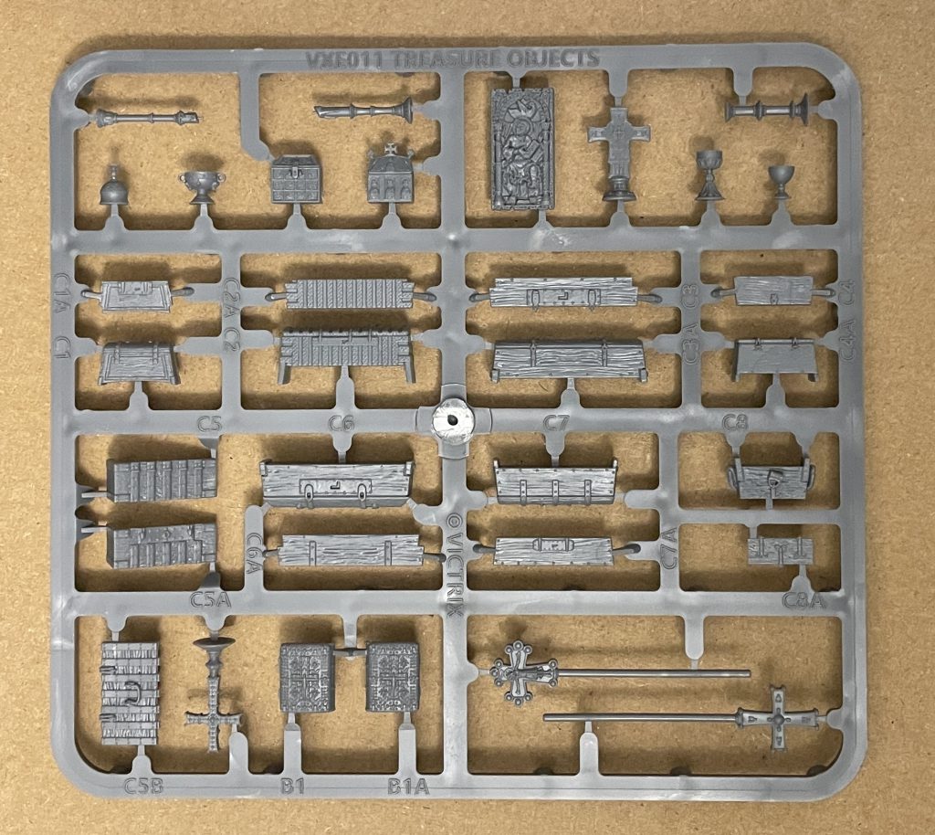 It is a lot of gear, and I imagine this being an excellent split purchase with a friend or clubmate. You might want six processional crosses (good conversion fodder for pilgrims and knightly orders!) or 24 chests, but at a certain point you’re probably looking for reasons to use them - a sprue and a half is probably all you need, though massive props to Victrix for stuffing the bag full of them!