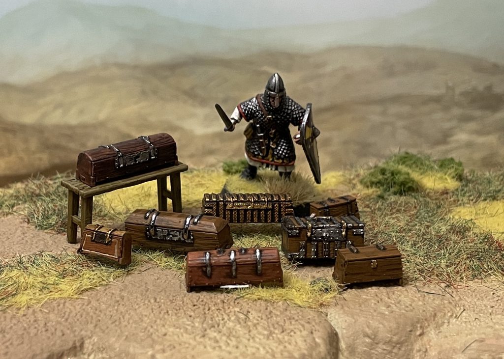 This will do very well for anyone interested in glamming up their board with scatter and scenic terrain and most of a sprue has gone into my Sarissa Norman Church to give it a lot of period-accurate life! Above and beyond the scenery, it’s a set that will immediately appeal to Pillage players, with the vast majority of items being large enough to use as loot markers without further basing. You can very quickly and easily represent portable loot with a casket or chest, potentially even assigning different gold values to different items. Pillage is all about the look and feel, so having your models raid a monastery and come away with golden crosses and jewelled bibles rather than cardboard tokens is absolutely well worth the time and money you’ll invest in this set.