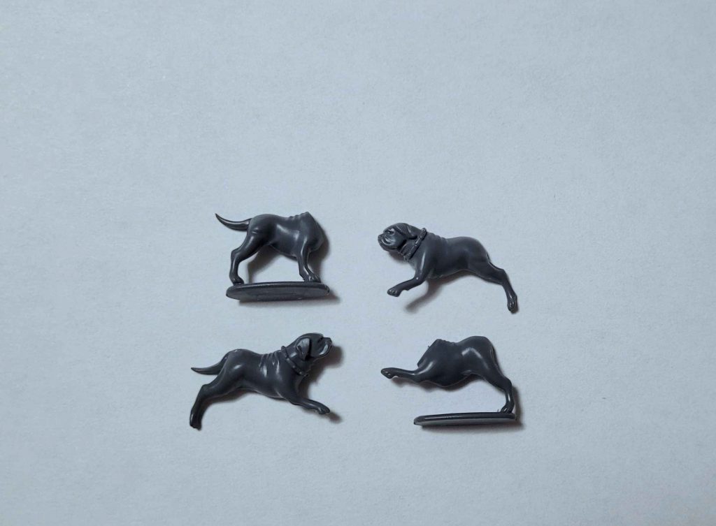 The dogs are a very welcome bonus and are quite possibly our favorite part of the kit. There aren’t many options on the market for plastic 28mm scale dogs, and these are very characterful bulldogs. They’re extremely quick and satisfying to assemble and paint and look great on the table. The only flaws we can find on the dogs is that they could use more poses and that there’s a small gap that needs to be filled at the base of the tail.