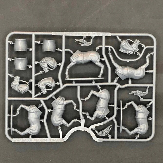 The horse sculpts are reused from other Wargames Atlantic kits with new saddles and armour to dress them up. They’re well sculpted, and all the new components are designed to fit over the old sculpts very precisely. These are easy to clean-up and assemble, though we’ve found that the straps that go over the horses’ rears are a bit fiddly to line up and glue, so make sure to dry-fit them before gluing them on.