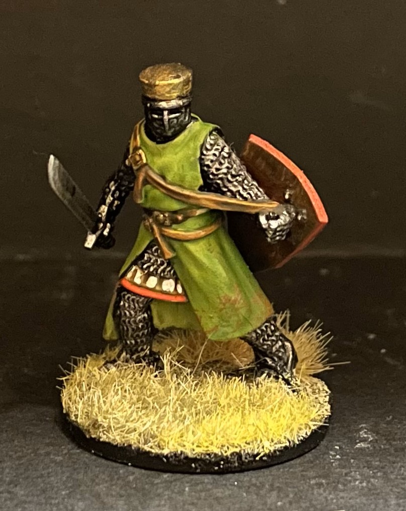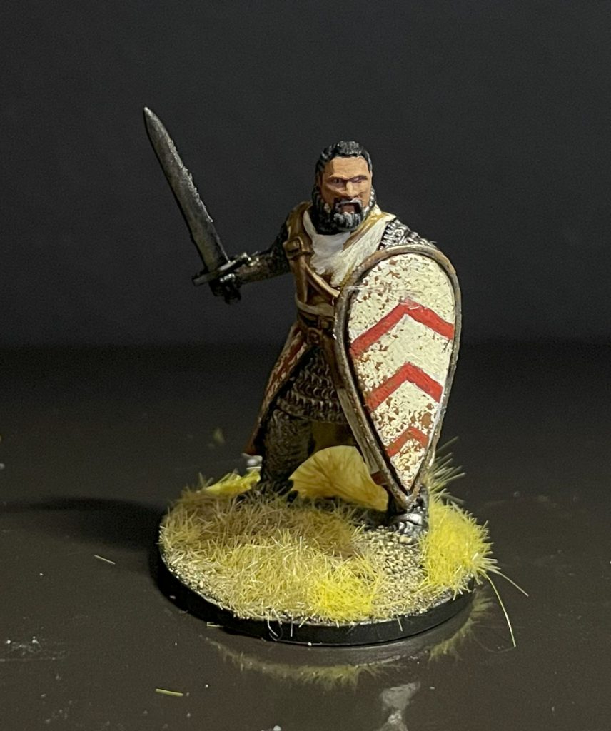 The hero pose is fantastic and intimidating, but with one a sprue it's the only one you're definitely going to repeat with little possible variation. After doing the full box I think it would stand out - four guys showing off their lovely surcoats! If you wanted to mix it up even more, I'd take the shield arm off at the shoulder and replace it with the "spare" shield arm mentioned above. The shield should then cover up the loose straps, giving you a lot more variation in poses.