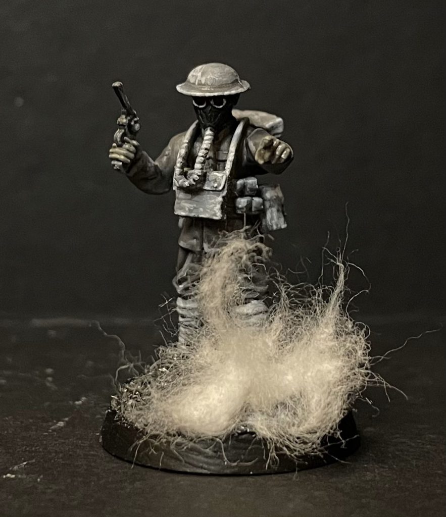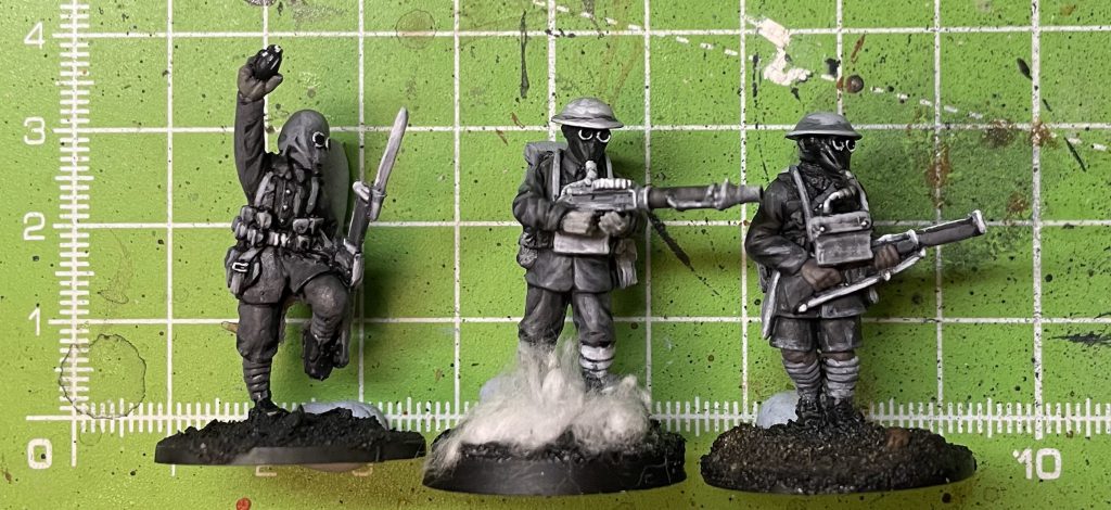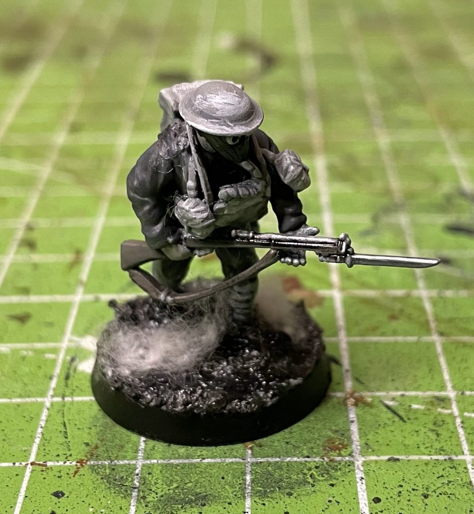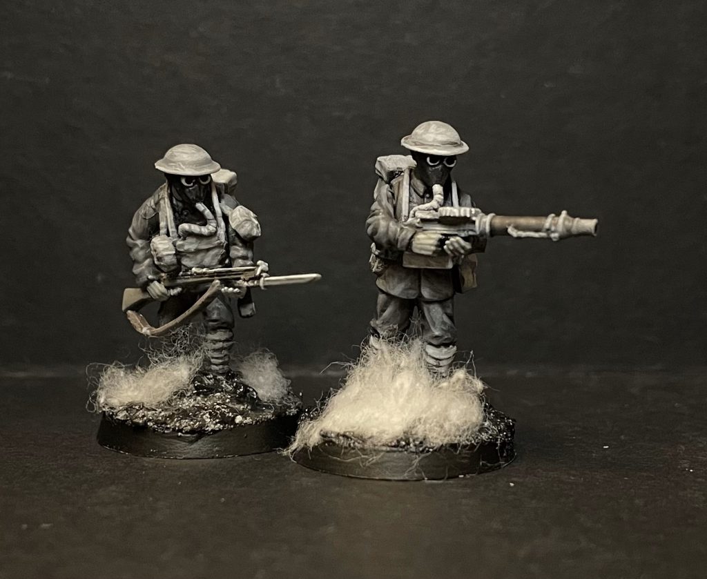 After asking on our Patron Discord (hey, sub to our patreon and get good painting advice) about how to achieve this look, a second go around worked much better. I've since stripped and repainted my metals in the same scheme and added some black, shiny mud and cotton wool to the bases. It's a fun scheme to paint but only in short bursts, sitting and doing ten models at once really started to get tedious, so progress on the platoon as a whole has been slow. Still, the models take paint well and the exceptionally crisp detail means that the greyscale look really works with only a little effort.