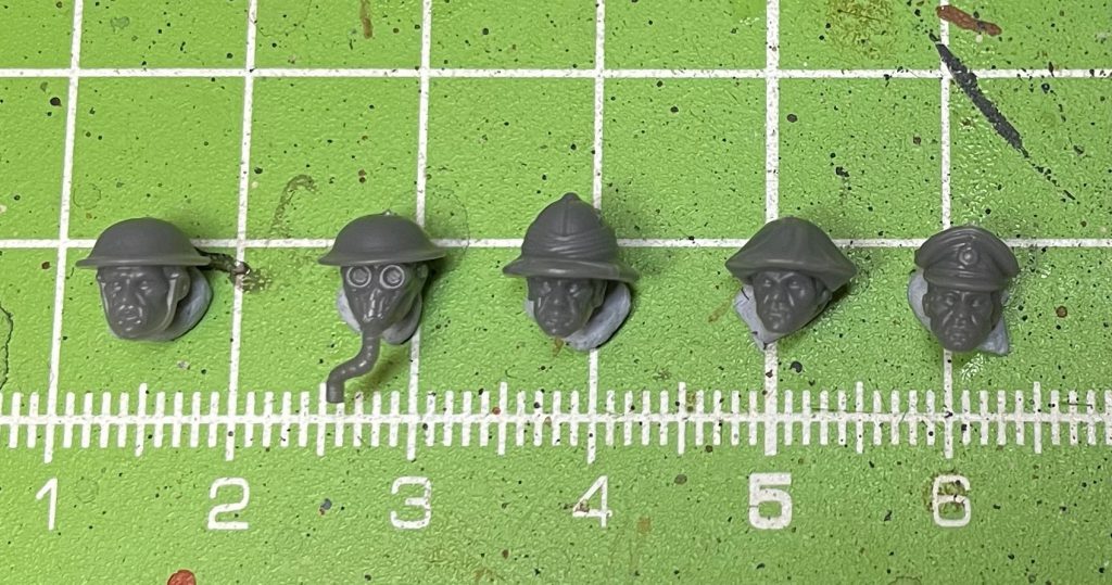 As a kit designed for use to model just about everywhere British-uniformed troops fought in the First World War, the generic British uniform and webbing bodies are great, with the heads bringing in the options - Brodie helmets (with or without cover) give you 1915-1918 Western Front (and other fronts), Pattern 05 caps cover the early war, Pith Helmets for Gallipoli, Kut and Mesopotamia and, finally small box respirator gas masks and Brodie helmet heads for everywhere the gas was. That all makes for a pretty flexible box, pretty much a one stop shop for everywhere (and everywhen) the British Army fought from 1914-1918.