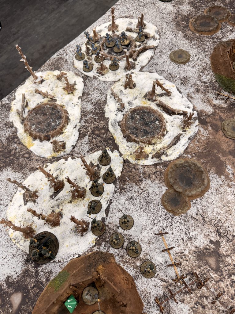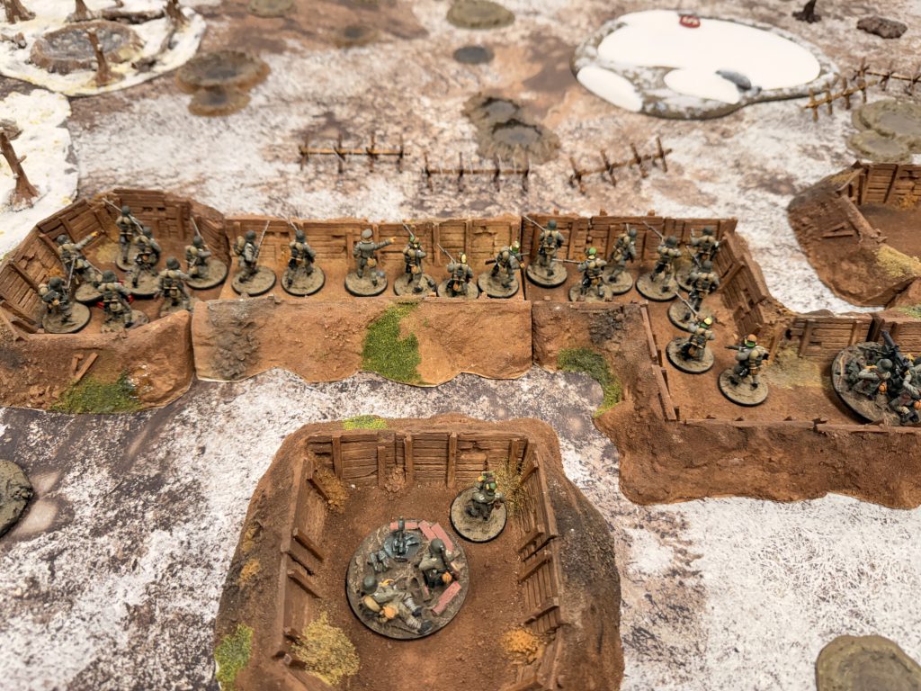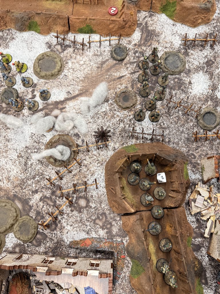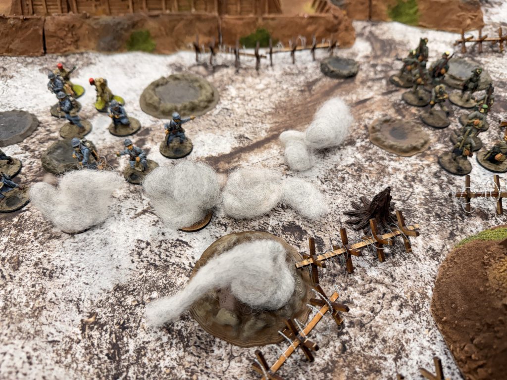 In particular, I'm a big fan of the inclusion of the creeping barrage that allows a player to create a line of explosions that damage anything they hit as well as block line of sight, which is historically accurate. Launching a creeping barrage requires a sustained use of a player's order tokens, but provides a 15” wall of shells that both screen your advancing forces and act as a looming wall of doom as it creeps forward towards the enemy trenches. Another inclusion that I appreciated was the ability to launch troops from a forward position which represents either units infiltrating into no man's land or the use of Russian Saps.