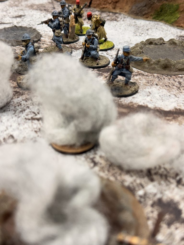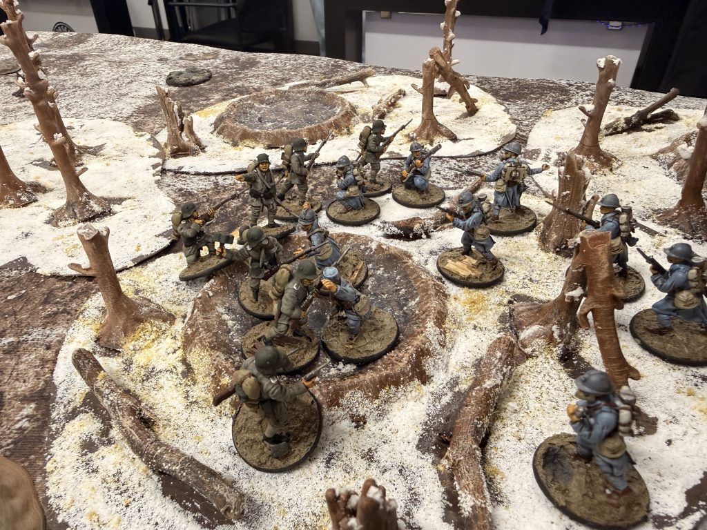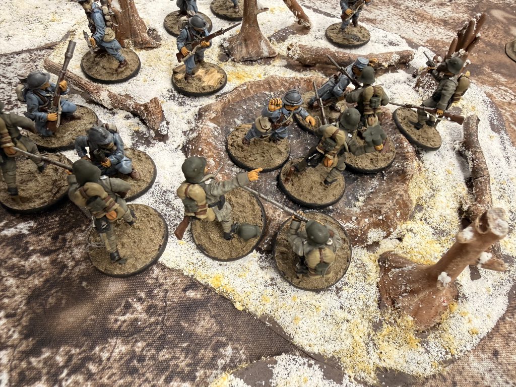 I think this appropriately represents the level of command-and-control in WWI armies. Small unit tactics were still in their infancy in this period, and only specialized troops, such as Stormtroopers had training on how to act independently in the field. This was still a time when officers were essential for directing the behavior of the men and keeping them on mission. The rule set then puts the officers front-and-center and makes them an indispensable part of your force. Junior Officers, in command of platoons, are in danger of being killed anytime their unit takes a casualty. While Junior Officers die along with their men, Senior Officers cannot be directly targeted by enemy shooting attacks, allowing them to wander the battlefield with relative impunity (although they can still be the victims of a stray artillery round).