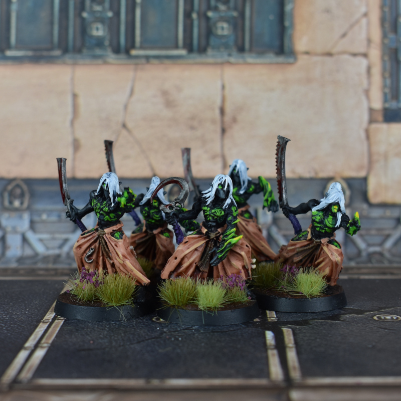 These are the first models I've painted this year for AoS or 40k, two games I ostensibly play. They were a ton of work for 70 points of chaff, so I haven't gotten to the second group of 9 yet. Still, I'm happy with how they came out, and Skeleton Horde on the bone was a real time saver. Contrast is good stuff, y'all.